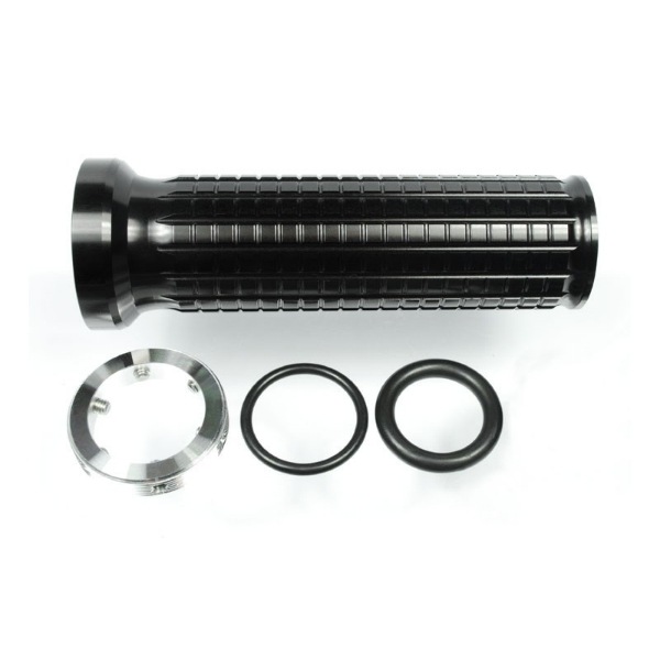 | 商品説明 | mo.gripは、1インチまたは22.2mm(7/8インチ)の一般的なハンドルバーに使用できるアルミ削り出しのユニバーサルグリップです。 複雑な彫刻が施されたデザインは、ハンドルバーエンドに取り付けるmo.blaze(バーエンドウインカー)と完璧にマッチします。無垢のビレットアルミニウムから機械加工と旋盤加工で作られており、表面はブラックアルマイト処理されます。 外側のグリップシェルを固定するクランプは、ネジ式のインナーリングで行われているため、外からは見えません。ハンドルバーやスロットルグリップへの固定は、片側6個のステンレス製ホーロースクリューで調整します。手元部分はブロック状になっており、快適なグリップを実現しています。 mo.gripは貫通タイプのグリップです。mo.blaze(バーエンドウインカー)やmo.view(バーエンドミラー)無しで使用する場合は、エンドキャップmo.grip end capも別途ご注文ください。 |