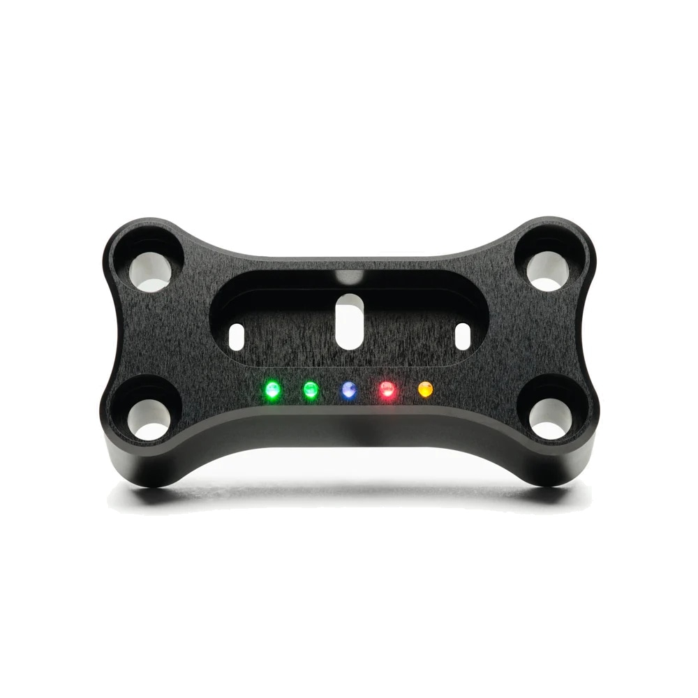 モトスコープミニが綺麗に収まるインジケーター内蔵ハンドルクランプ。