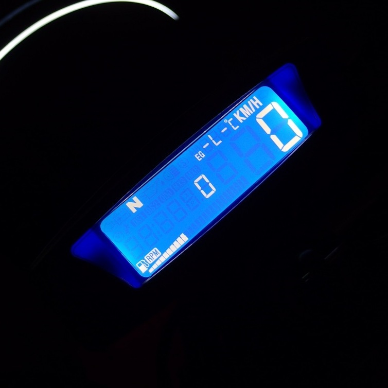 カスタムメーターアスラのLCディスプレイには各情報が表示されます。