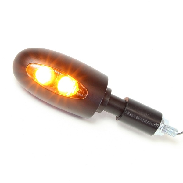 内部にはLEDユニットと制御回路が組み込まれており、12V車両で安定した点灯を実現しています。ECE 50R認証を取得した車検適合品で、実用面でも安心して使用することができます。ブラックボディと濃いレンズの組み合わせは、ネイキッド、ストリートファイター、クラシック、モダンカスタムなど、さまざまなスタイルのバイクに自然に馴染みます。