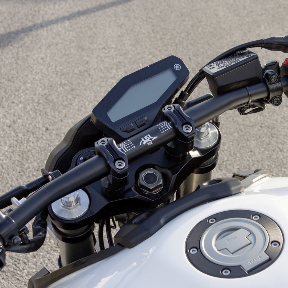 ハンドル幅835mmとワイドなハンドルは、バーエンドミラーを下向きに付けても車体への干渉が避けられる可能性が高く、ユーロ系ストリートファイタースタイルを目指す際の基本となる、ワイド&ローなハンドルでスタイリッシュなカスタマイズの手助けにもなってくれます。