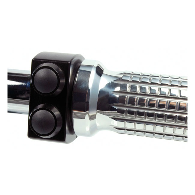 本モデルは、1インチまたは22mm(7/8インチ)のハンドルバーに対応し、コンパクトな設計により複数ユニットの装着も可能です。 3つのプッシュボタンはブラックで統一され、ハウジングとの一体感が際立ちます。 各ボタンはIP65規格に準拠した防水・防塵性能を備え、ツーリングや雨天走行でも安心して使用できます。 人間工学に基づいた圧力ポイントにより、グローブ着用時でも確実な操作感が得られ、視線を逸らすことなく直感的にスイッチングが可能です。