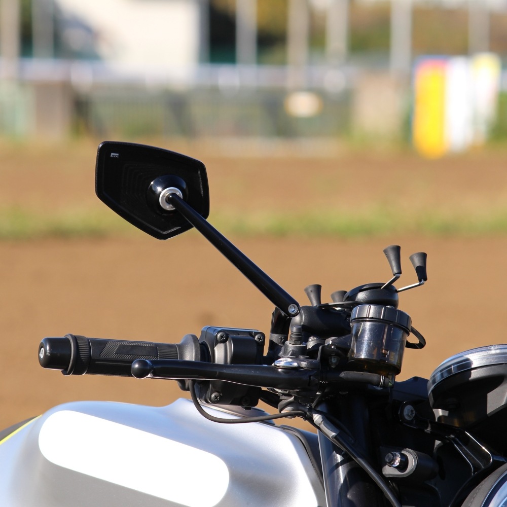 | 商品説明 | モトガジェットは現在、ガラスレスミラーシリーズmo.viewを推奨しています。このオートバイのミラーの特別な特徴は、アルミボディに直接加工されている特許取得済みのミラーで、ガラスを使わずにアルミニウム自体が鏡面となっています。 このことにより、エッジやフレームのない自由な設計が可能で、ミラー本体自体が非常に薄くて軽くすることに成功。 万が一の時にも、ガラスが粉々になったり、ガラスが落ちたりすることはありません。 凸面鏡面は、超精密機械のダイヤモンド工具によるフライカッティングで製造されます。その後、真空中での複雑なプラズマコーティングプロセスを経て、酸化、腐食、摩耗に対して耐性のあるミラー表面となっています。 ミラーボディ、ミラーアームは、アルミニウムブロックからCNCマシンでフライス加工され、高品質なブラックアルマイトが施されます。全てのネジはステンレスで作られ、ステンレス製のボールジョイントは、ミラーの快適で非常に安定した調整を可能にしました。 ステム付きミラーmo.view raceは、縮小されたデザインで小さく、すべてのスポーティなオートバイにフィットします。M10サイズのすべてのネジ穴に取り付けることができます。 |