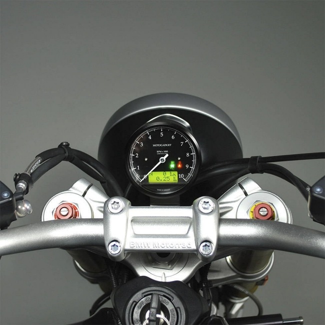 BMW RnineTにモトスコープクラシックシリーズ、またはクロノクラシックシリーズのメーターを簡単取り付け。