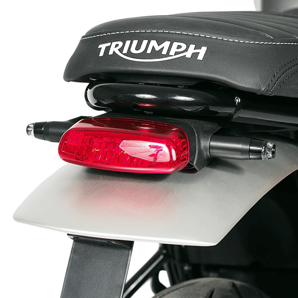 アダプターの形状はTriumphモーターサイクルのオリジナルマウントに正確にフィットし、付属のステンレス製ネジで固定します。ウインカーはアダプターの穴に押し込み、グラブスクリューで固定します。フロントとリアの両方に適合する。