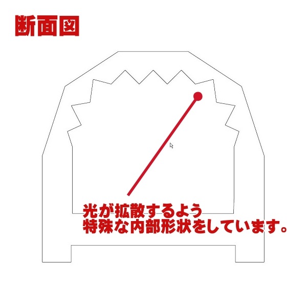 幅8.1mm×高さ7.0mmの非常にスリムなチューブの断面構造は視野角度と明るさを上昇、約120度の照射角があります。