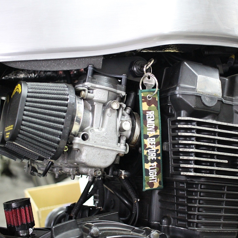 両面に刺繍されている130mm×30mmサイズのキーリングはバイク用にちょうどいいサイズで、その用途はキーリングとして以外にもディスクロックの外し忘れにもお勧めです。
