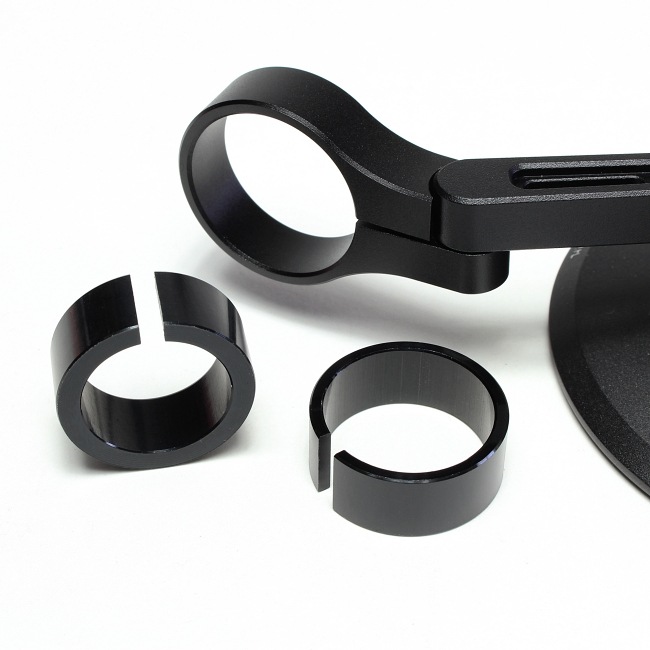 付属のアルミスペーサーはしっかりとハンドルをクランプします。