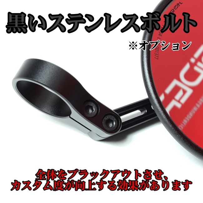 クランプ部のボルトは標準ではステンレス(シルバー)ですが、オプションの黒いステンレスボルトにすることにより、全体がブラックアウト化され引き締まり、ワンランク上のクオリティに仕上がることでしょう。