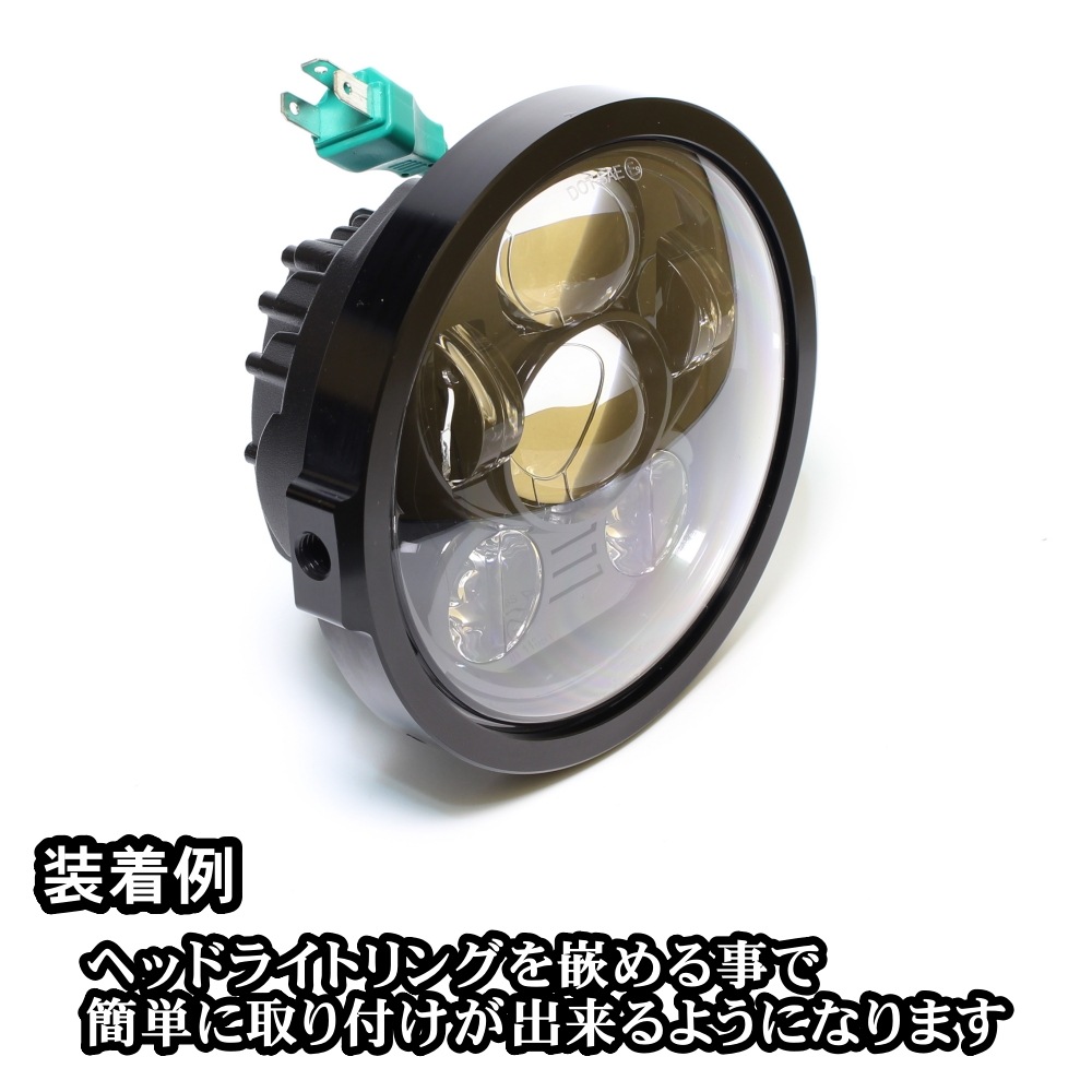 5.75インチ LEDヘッドライトレンズ用 アルミ削り出しヘッドライトリング サイドマウント ブラック