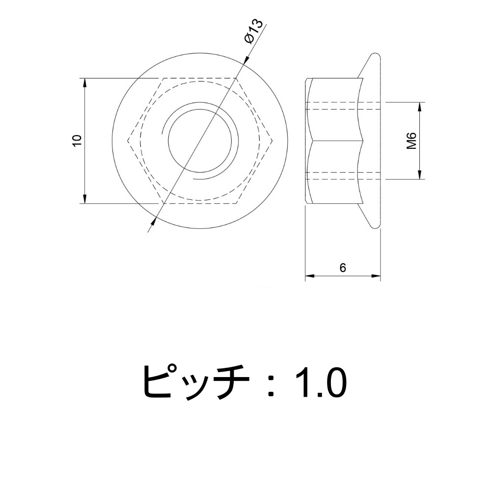 つばの付いた六角ナット。座面には緩み止めのセレート(ギザギザ)が付いてます。