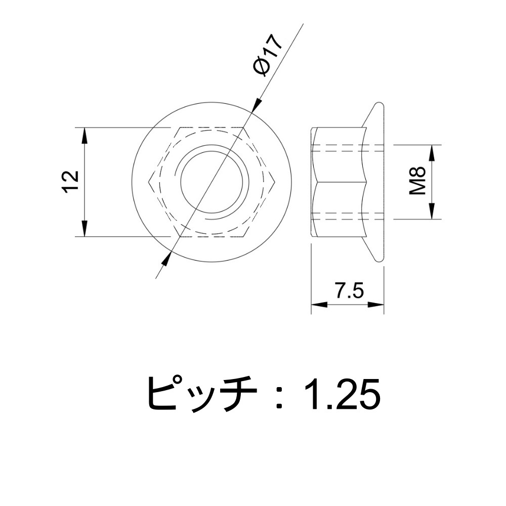 つばの付いた六角ナット。座面には緩み止めのセレート(ギザギザ)が付いてます。