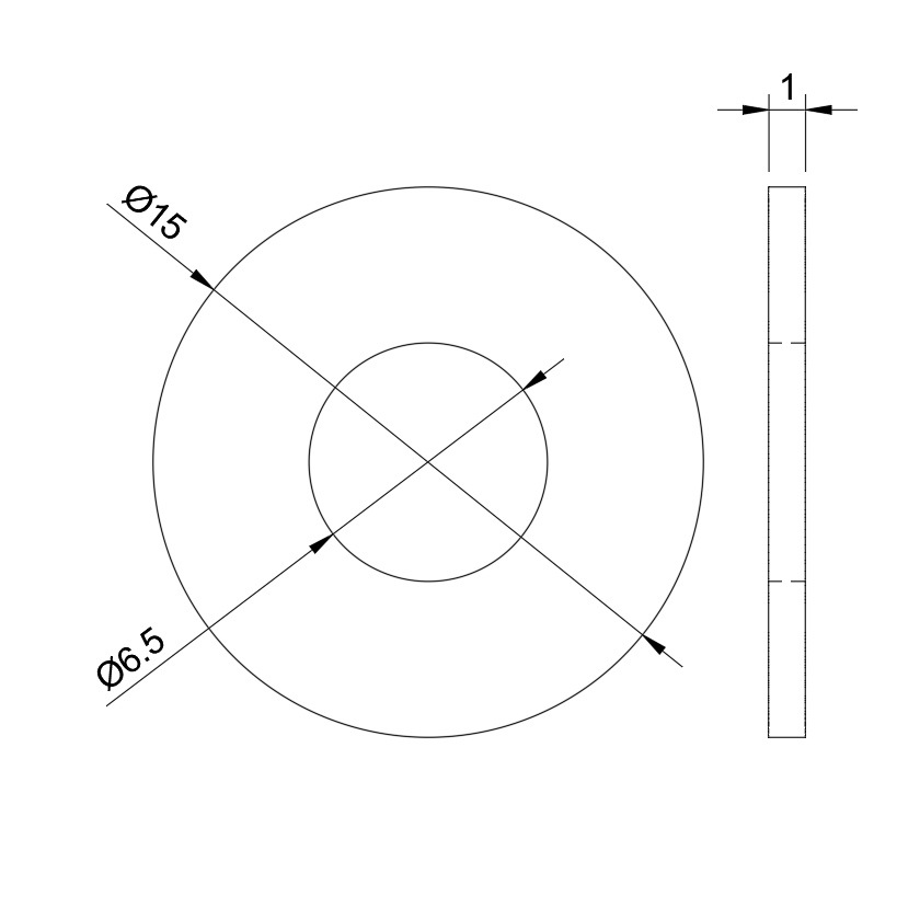 6.5×15×1 黒いステンレス 特寸 平ワッシャー(2枚入)