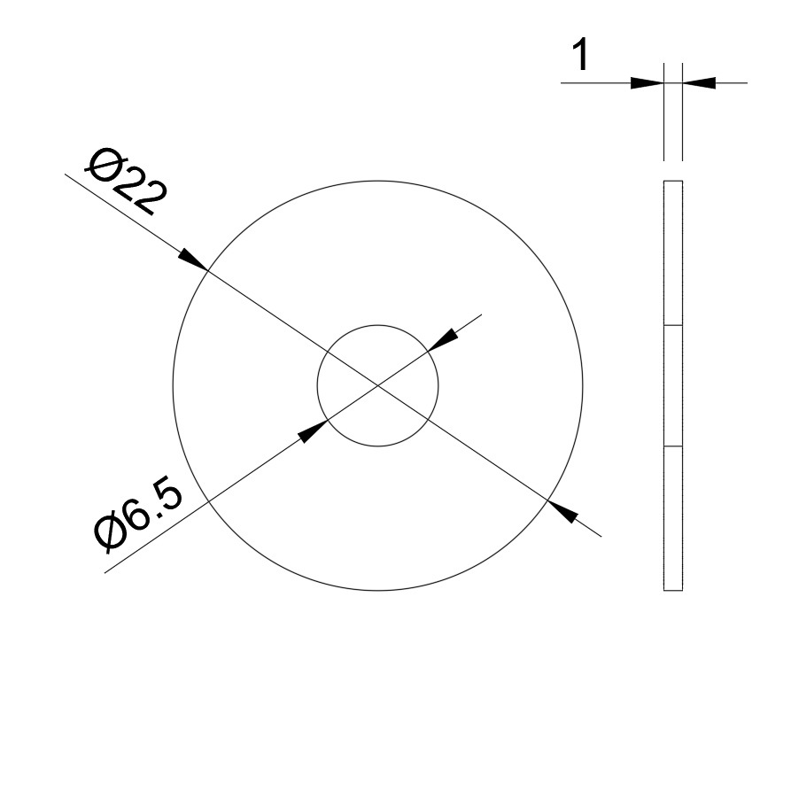 6.5×22×1 三価ブラック 特寸 平ワッシャー(2枚入)