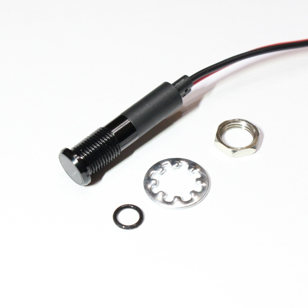 本体は直径10mm、長さ34mmというコンパクトなサイズで、取付穴径8mm、取付厚7mmまで対応。AC/DC 12V仕様で消費電力はわずか0.5Wと省エネ設計ながら、IP67の防水性能を備えており、雨天や悪路でも安心して使用できます。純正メーターへの追加はもちろん、フルカスタムメーターの構築にも適しており、ストリート系やカフェレーサー、ネイキッドなど、幅広いバイクスタイルに自然に溶け込みます。