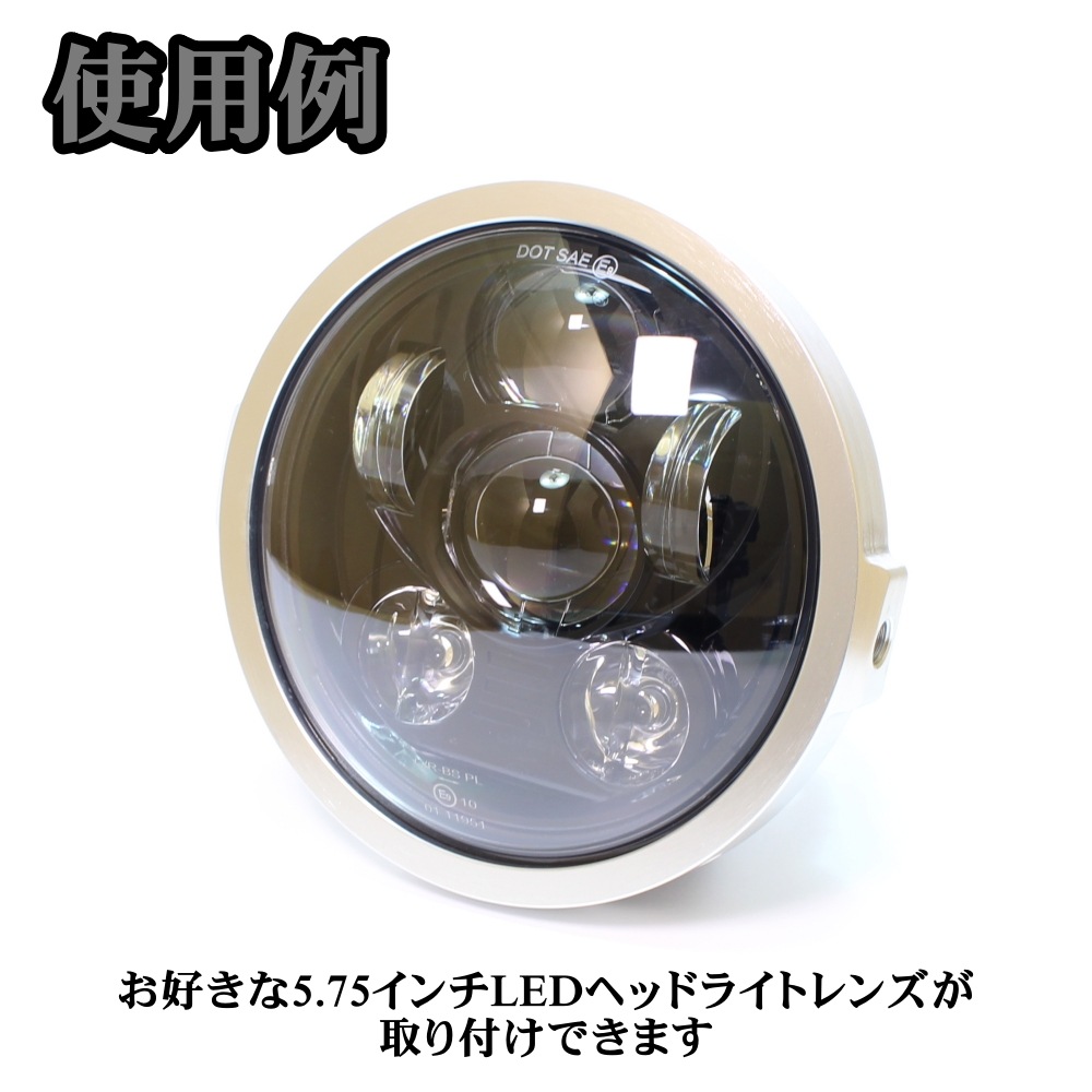 サイドマウント設計により、様々な車種への取り付けが可能で、好みの5.75インチLEDレンズとの組み合わせも自由自在。すぐに装着できる手軽さも魅力です。カフェレーサーやスクランブラー、ミニマルなスタイルを追求するカスタムバイクにおいて、機能性とデザイン性を両立したこのリングは、個性を際立たせる確かな選択肢となるでしょう。