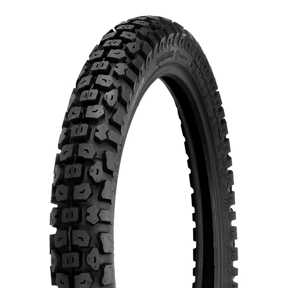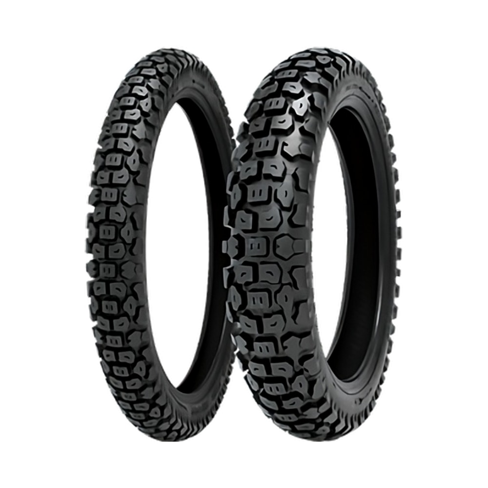 本製品は、全サイズがフロント・リア両対応のチューブタイプ設計。車種や用途に応じた自由なレイアウトが可能で、純正交換はもちろん、カスタムバイクにも自然に馴染みます。トレッドは深めのラグ構造を採用しており、砂利道や土路面でもしっかりと地面を捉え、滑りやすい状況でも安定したグリップを提供。舗装路では丸みを帯びたプロファイルとサイドノブの配置により、コーナリング時の安定性も確保されています。