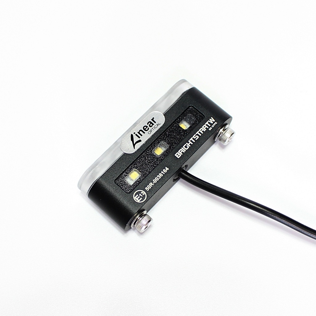 内部にはドイツ製OSRAM LED を搭載し、テール・ブレーキ・ナンバー灯の3機能を1ユニットに集約。 光学設計は、中央の直線的なリニア発光と、周囲に広がる拡散光の2パート構造になっており、 小型ながらメリハリのある視認性を実現します。